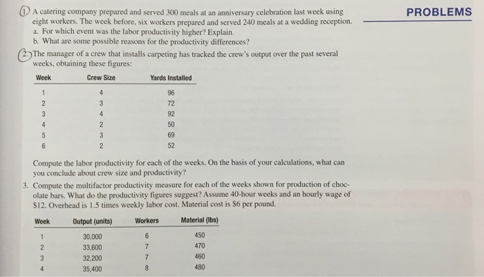 Solved A Catering Company Prepared And Served 300 Meals At An Anniversary Celebration Last Week Using 9 Workers The Week Before 9 Workers Prepare Course Hero