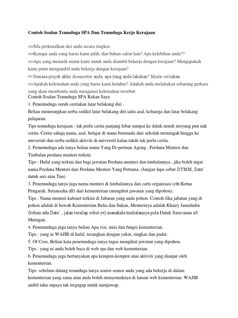 Contoh Soalan Temuduga Spa Dan Temuduga Kerja Kerajaan Pdf